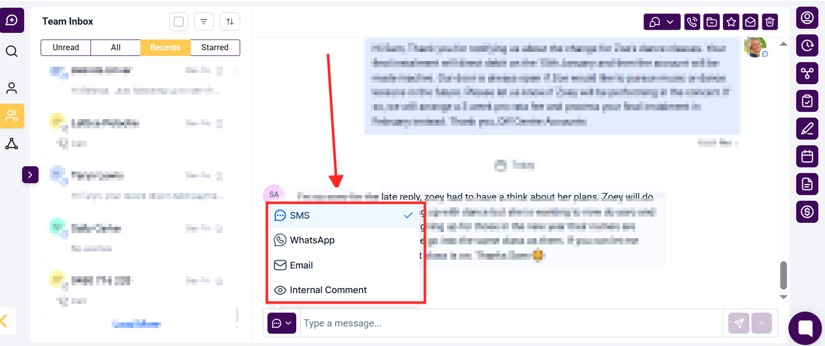 Choose a channel to send the Payment link. For this example, we're using SMS.