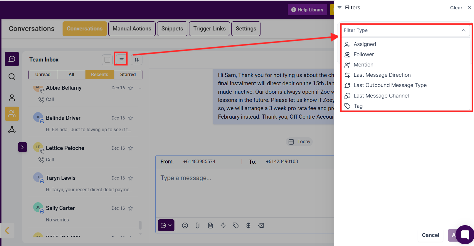 These filters allow you to easily and quickly separate conversations helping you cut through the noise and get straight to the ones you need to interact with, helping you streamline your process.