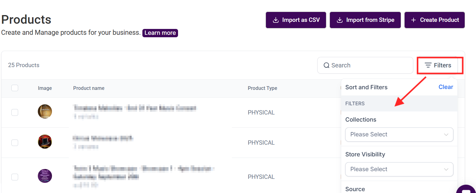 The Products tab in the Payments section of your CRM allows you to manage all your product listings, whether you are uploading them via CSV, importing them from Stripe, or creating new products from scratch. This feature provides an easy way to handle your offerings and ease the purchasing process for your clients while maintaining an organized view of your products.
