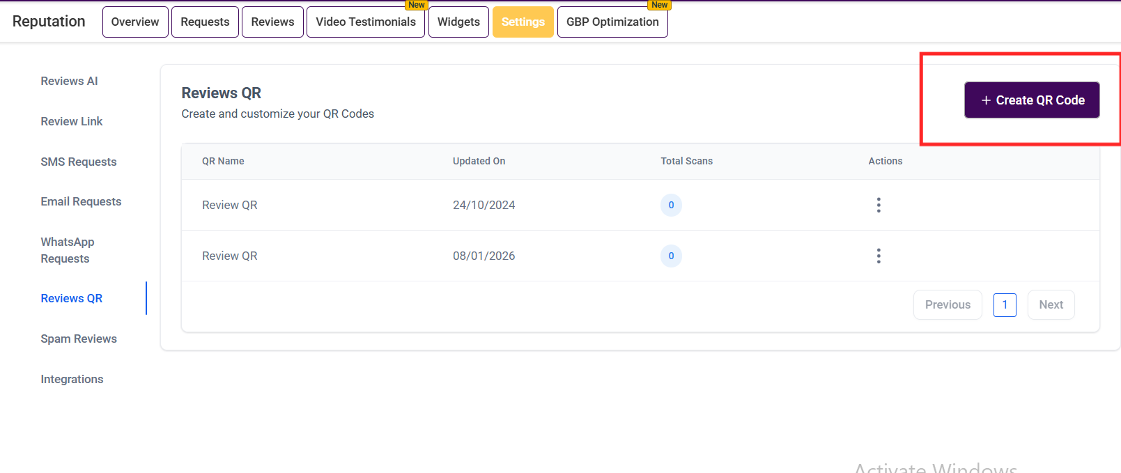 Users can easily create and customize their QR codes to send it to the customers by clicking the create QR code option