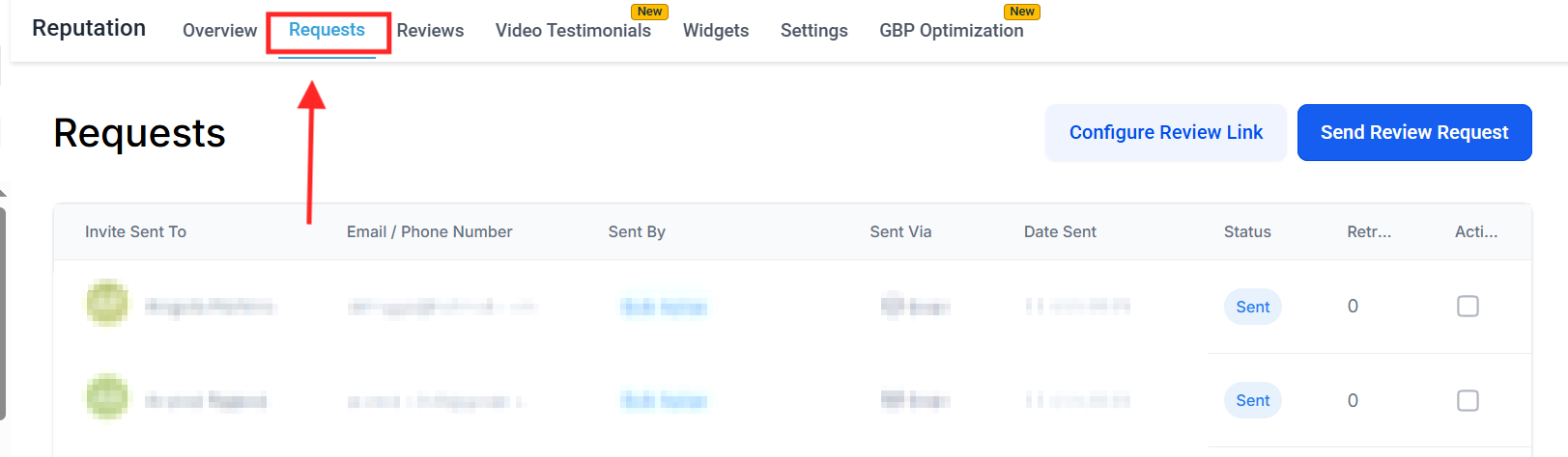 The Requests section provides a comprehensive overview of all review requests you’ve sent, whether they are completed or still pending. It also displays essential customer details, enabling you to closely track engagement and interaction with your review outreach. This detailed record serves as a valuable tool for assessing the effectiveness of your feedback collection efforts, allowing you to make informed adjustments to enhance your reputation management strategy and improve customer relations.