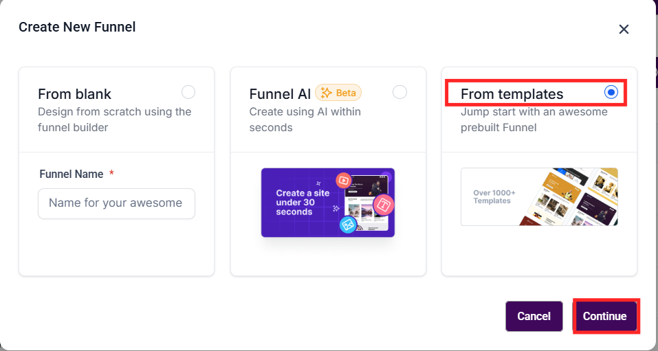Select a template that suits your ebook funnel needs.