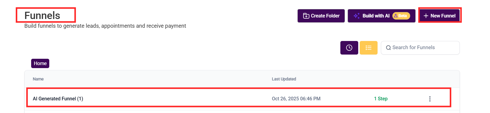 Navigate to the Funnels section in your account by clicking on the “Sites” menu on the left sidebar. Create a new funnel from scratch or using an existing template. If you already have a funnel you would like to personalise, open the funnel editor by clicking the name of the funnel.