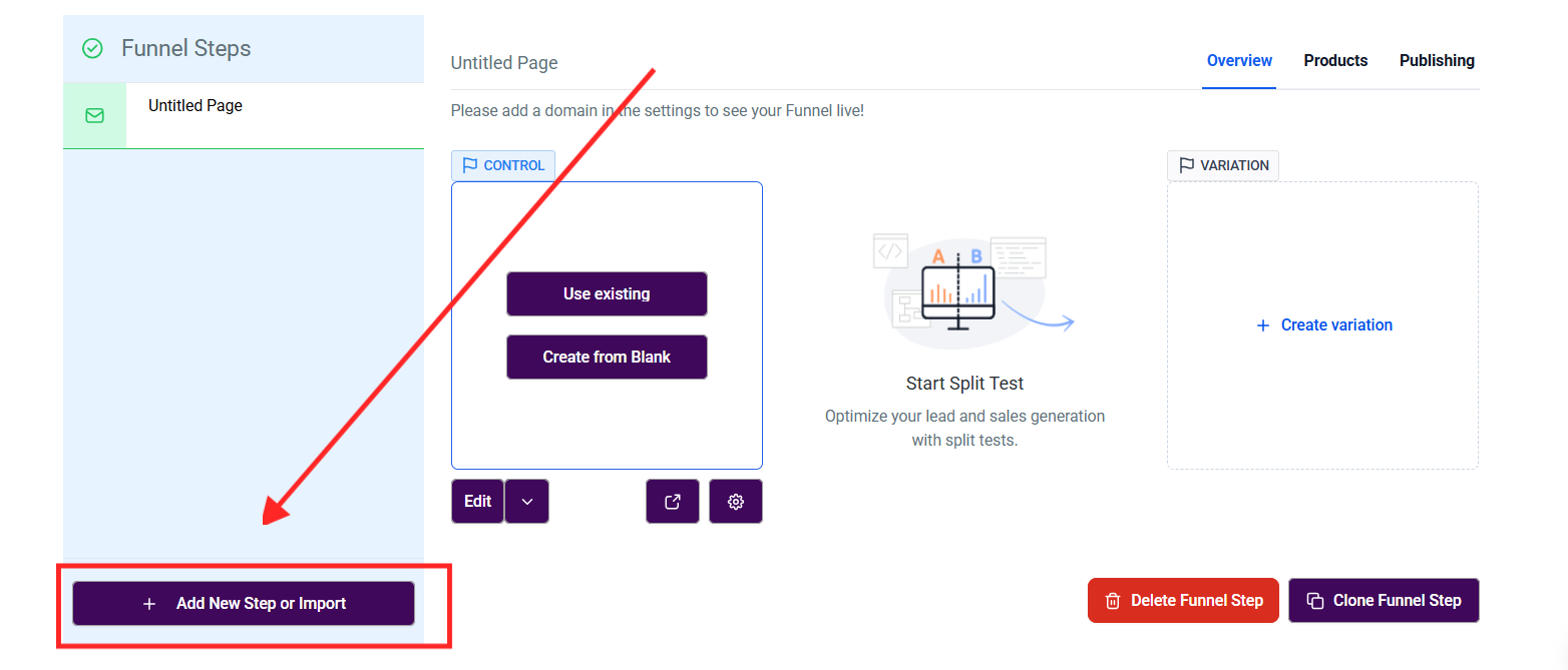 Ensure you have set up a domain for your funnel. Navigate to Settings and select a domain. If you haven't added a domain, you'll need to do so.