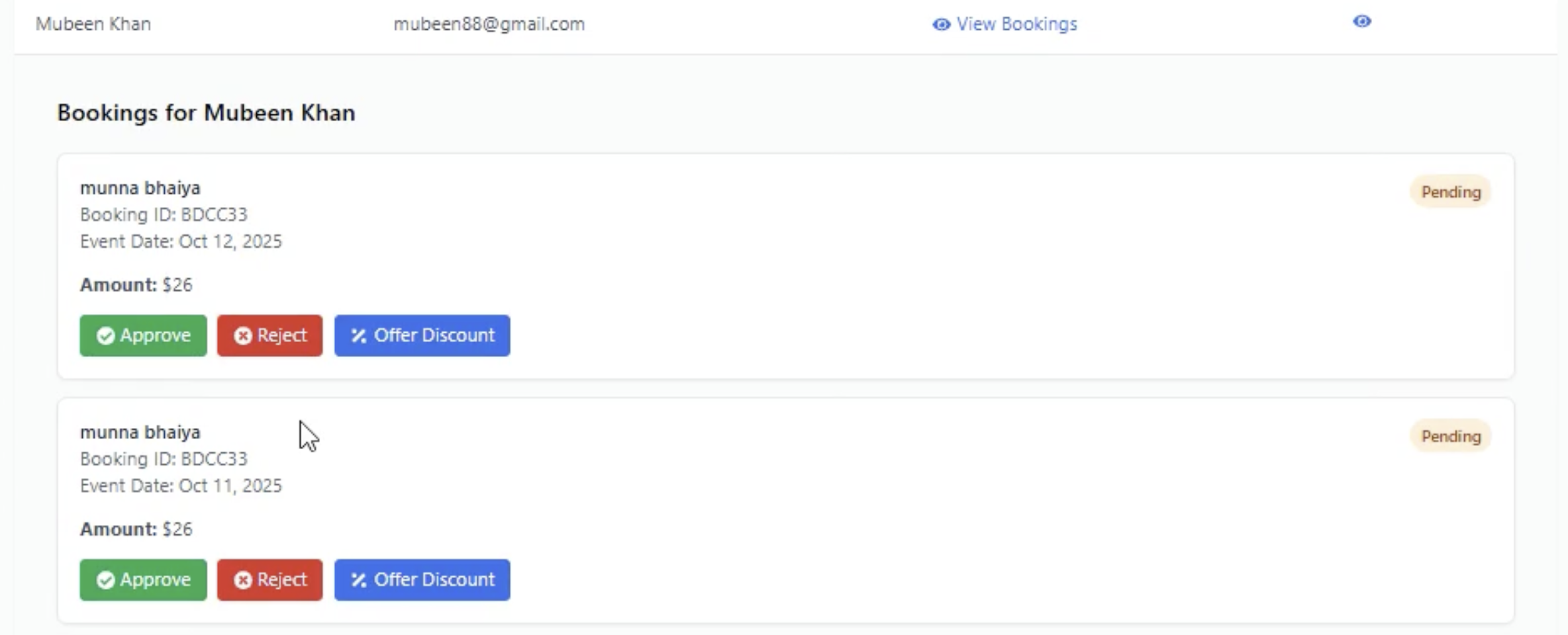 You will then see classes that the customer was requested. From here you can approve, reject and offer a discount directly.