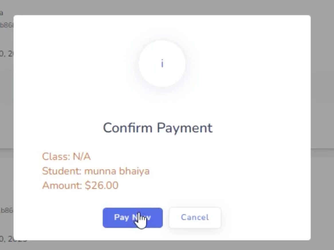 Customers may log in and make a manual payment via the payment portal. All they need to do is view their outstanding invoices by clicking the ‘invoices’ menu on the left side menu and click the ‘pay now’ button.
