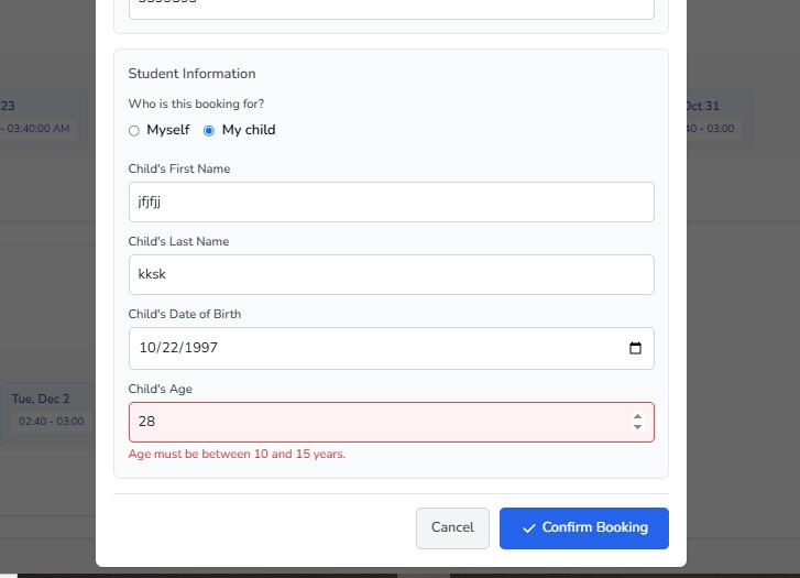5. If a childs age is not within the set range they will not be able to enrol into the class.