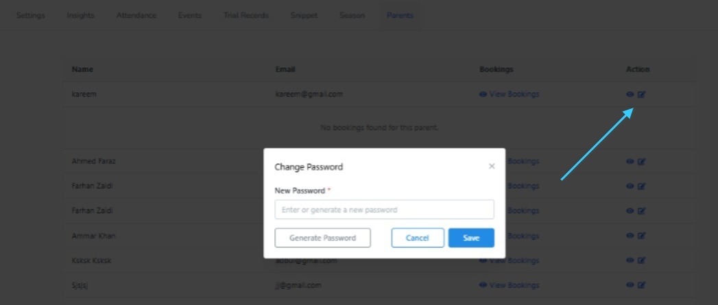 2. You can now provide a parent a new password via the parent list view if they forget their password.