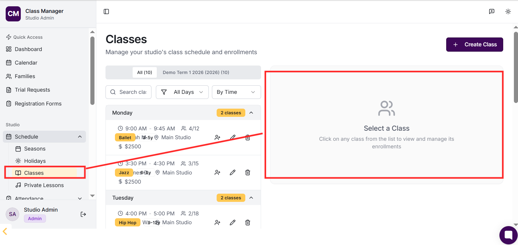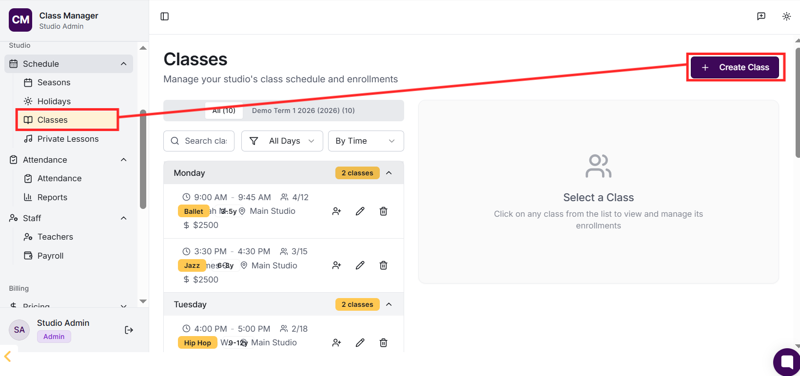 4) Create your classes with schedules and pricing,
