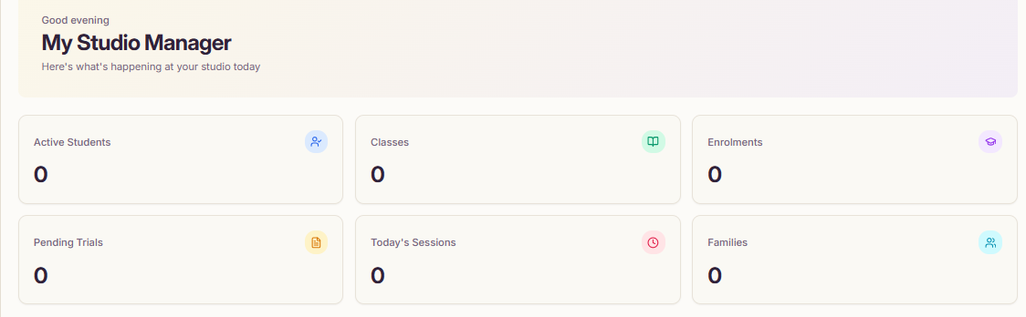 From the dashboard, you can easily monitor studio activity, review important statistics, and navigate to frequently used features. This helps you stay informed and manage your studio more efficiently throughout the day.